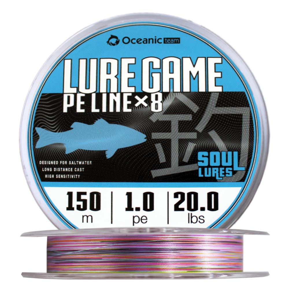 Το Lure Game x8 από την Oceanic Team είναι ένα round profile x8 (οκτάκλωνο) νήμα κατάλληλο για την τεχνική του spinning σε multi color το οποίο αλλάζει χρώμα ανά δέκα μέτρα και κάθε μέτρο διαθέτει 10 εκατοστά μαύρο χρώμα! Διαθέτει διάμετρο σε PE αναλογικά ίδια με την ιαπωνική κλίμακα κάτι που σημαίνει ότι είναι εξαιρετικά λεπτό ώστε να τυλίγεται σωστά στην μπομπίνα του μηχανισμού, να μην κάνει τούφες, να έχουμε εξαιρετική αίσθηση της κίνησης των δολωμάτων και να μας δίνει την δυνατότητα μακρινών ρίψεων! Ικανοποιεί όλες τις ανάγκες των Μεσογειακών ψαρεμάτων του spinning με στόχο τα λαβράκια, τους λούτσους, τα γοφάρια και τις παλαμίδες. Η κατασκευή του νήματος γίνεται με διαδικασία ποιοτικού ελέγχου για άμεση δύναμη και ευαισθησία ενώ η καρουλοποιήση του γίνεται με την μέθοδο «σπείρα-σπείρα». Διατίθεται σε συσκευασία των 150m και σε τρεις χρήσιμες διαμέτρους : ΡΕ #0.8, ΡΕ #1.0 & ΡΕ #1.2.